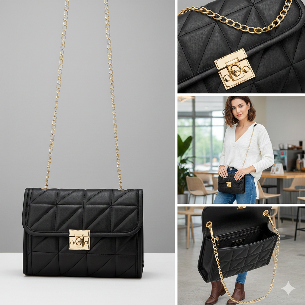 Bolsa Feminina Tiracolo Feminina Preta com Matelassê