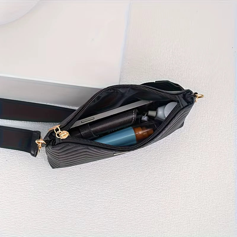 Apresentamos a Bolsa Feminina Transversal Modelo Raquel, o acessório perfeito para a mulher que busca combinar estilo, praticidade e conforto no dia a dia. Com um design moderno e compacto, esta bolsa se adapta facilmente a qualquer ocasião, do trabalho a um passeio casual. Seu acabamento em matelassê em ziguezague e os detalhes em metal dourado conferem um toque de sofisticação, transformando um acessório funcional em uma verdadeira peça de destaque.
